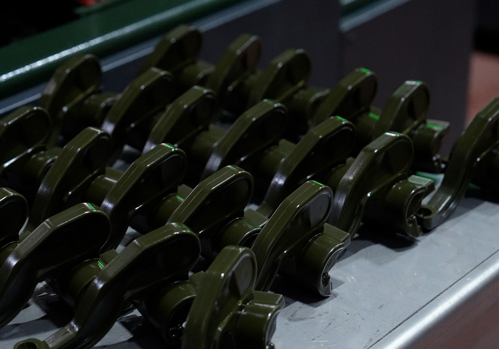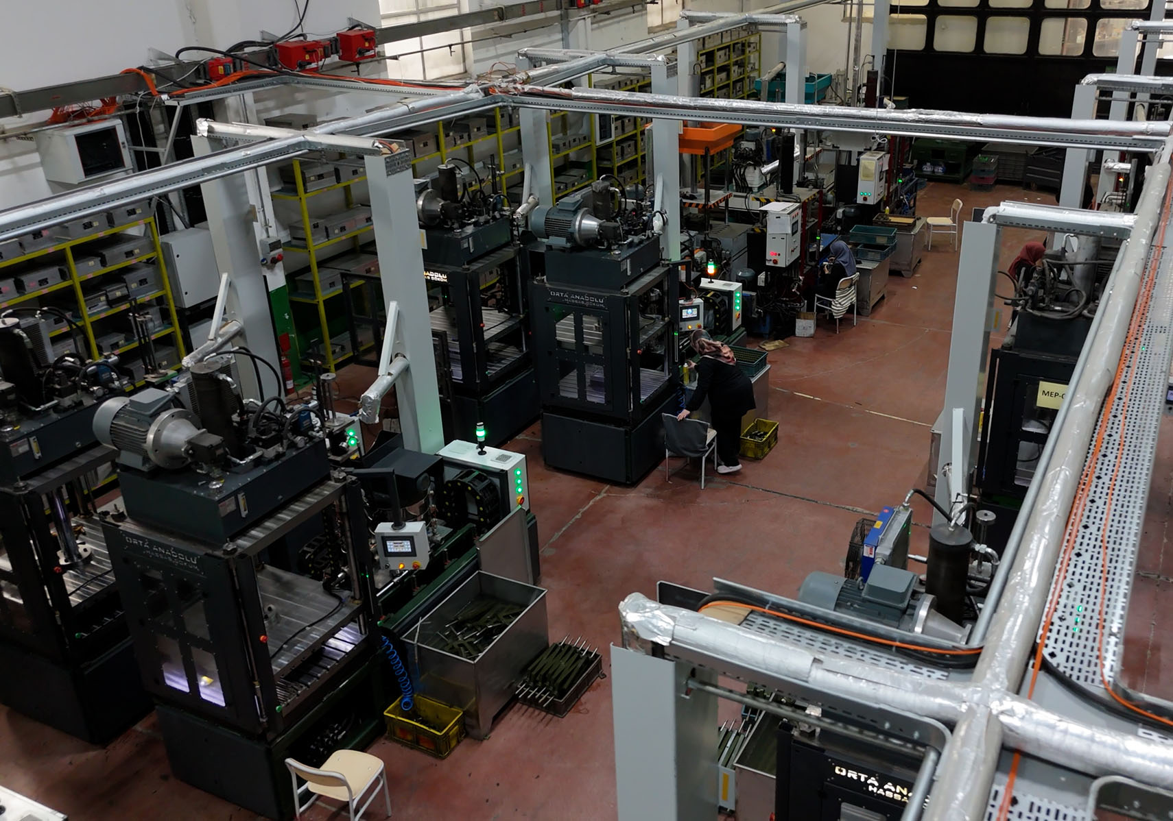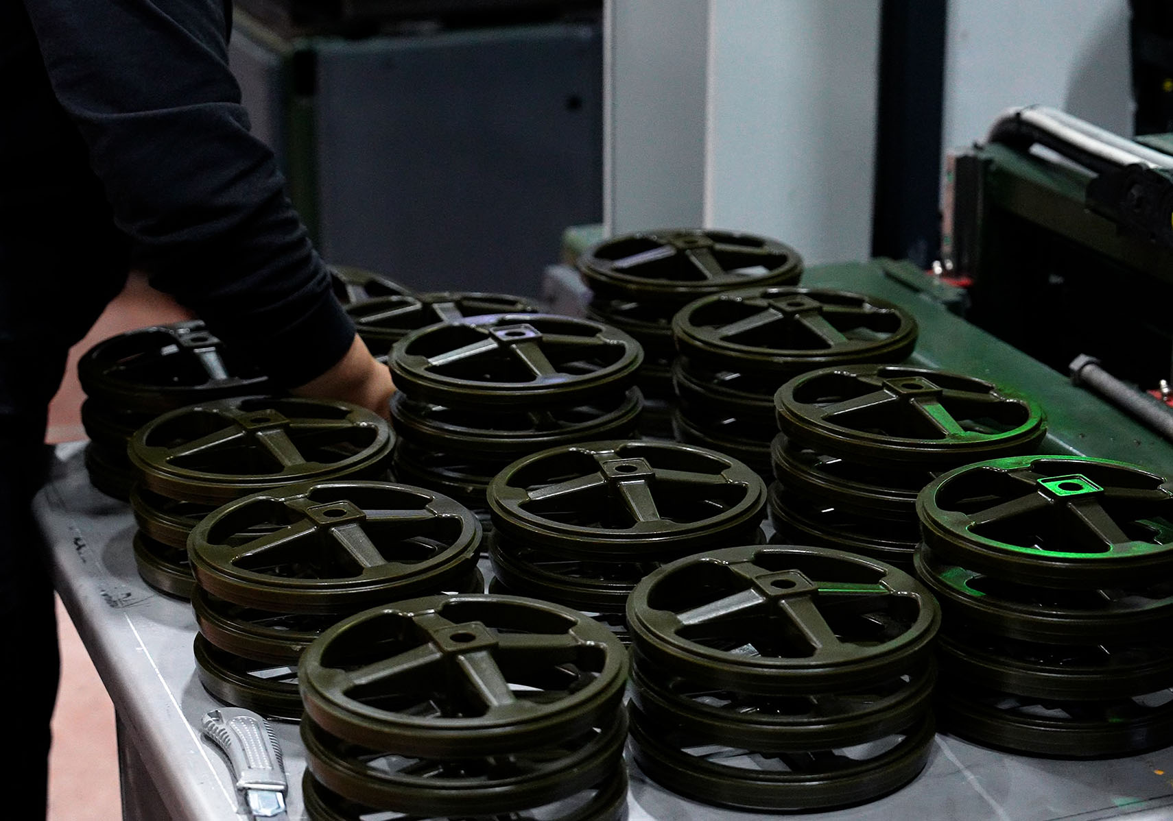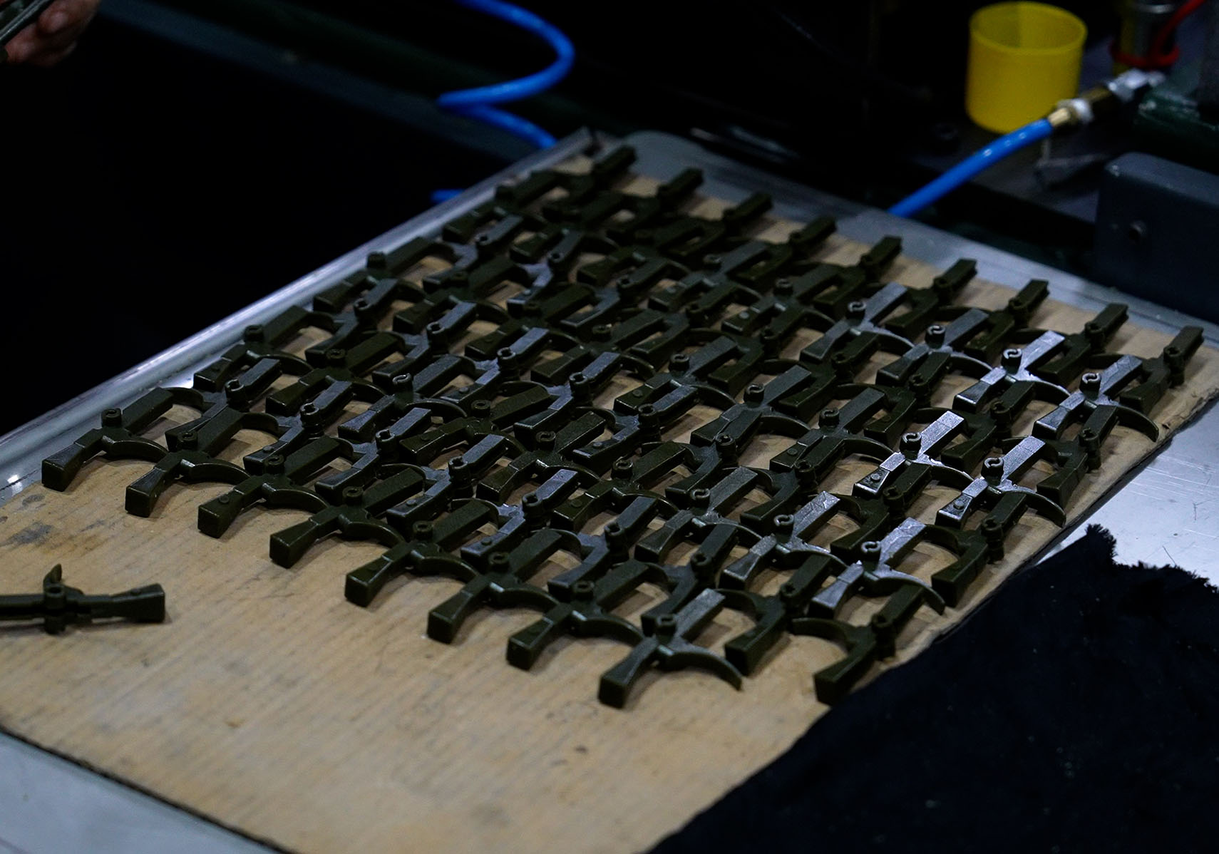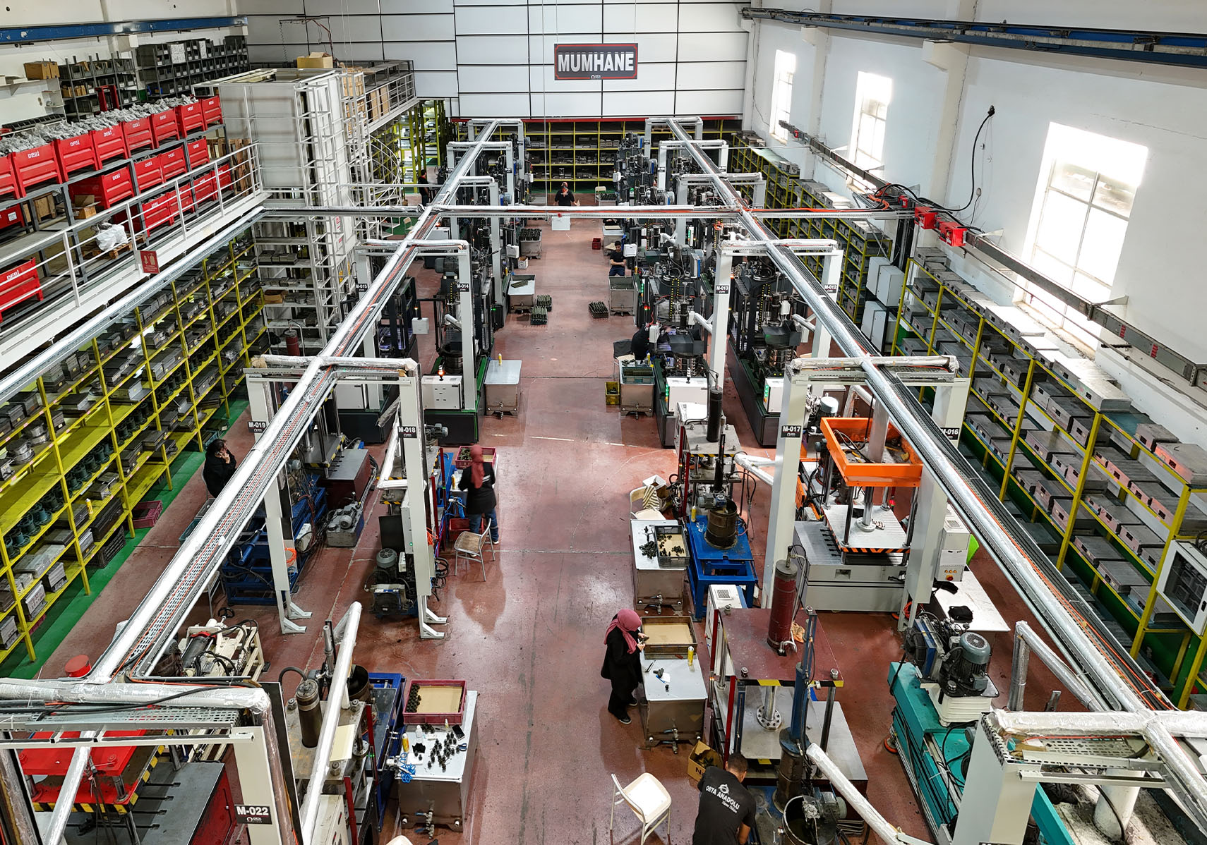 Kalıptan çıkan malzemeler, proses kontroller sağlandıktan sonra salkımlara dizilmek üzere masalara gönderilir.
